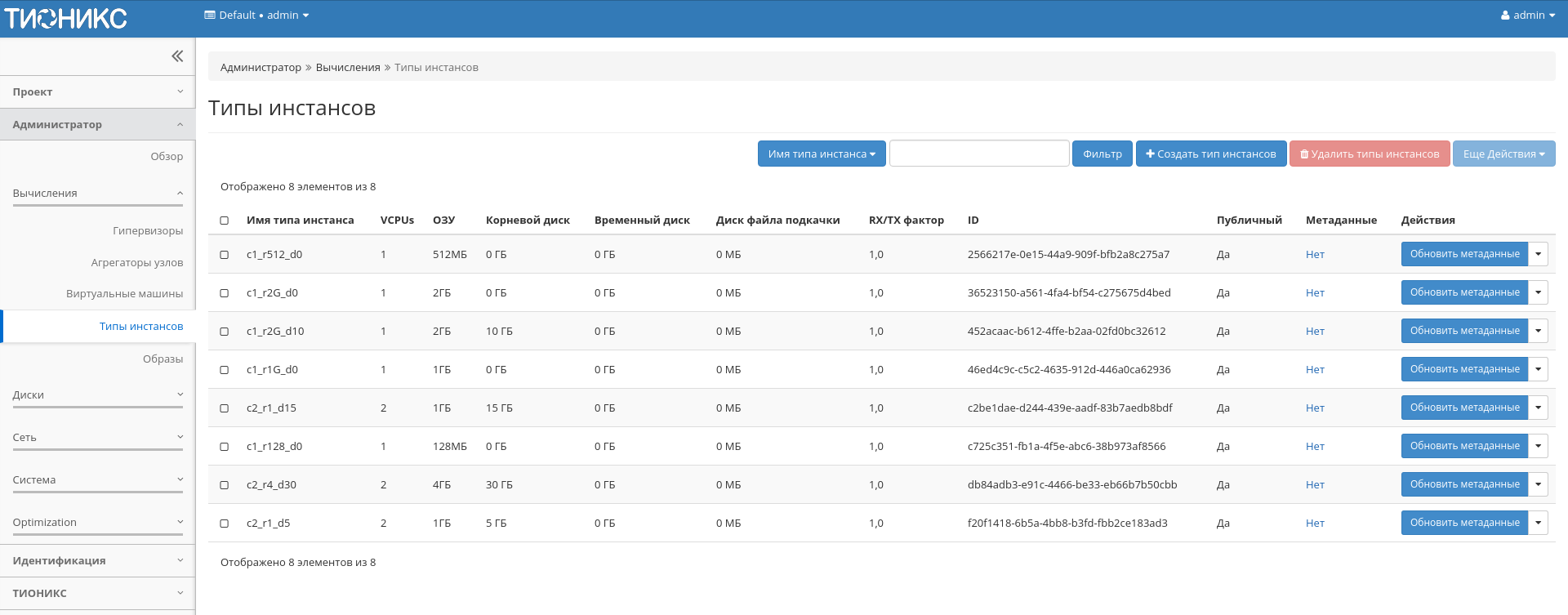 2 Изменить тип инстансов Редактирование ранее созданного типа виртуальной машины.