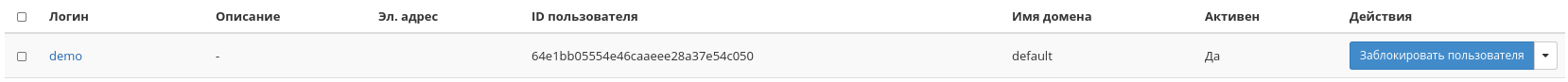 | 6 | Разблокировать пользователя | Активация выбранного пользователя. Действие доступно только в отношении неактивных пользователей. |