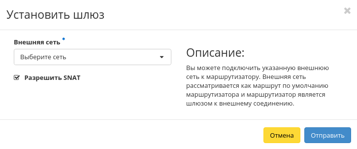 - Внешняя сеть - доступны для выбора ранее созданные сети;